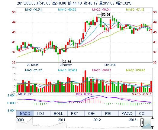 | 最 高: | 48.08 | 成交額: | 4.43億元 | 換手率: | 3.31% |