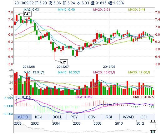 | 今 開: | 6.28 | 成交量: | 9.16萬手 | 振 幅: | 1.93% |