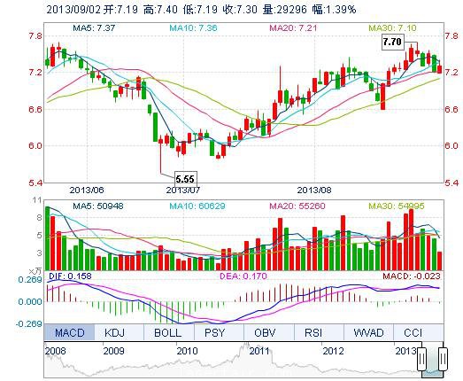 今開: 7.19 成交量: 2.93萬(wan) 手 振幅: 2.92% 最高: 7.40 成交額: 2141.56萬(wan) 元 換手率: 1.07% 最低: 7.19 總市值: 20.81億(yi) 市淨率: 3.39 昨收: 7.20 流通市值: ...