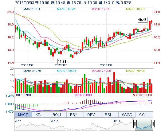 | 今 開: | 19.00 | 成交量: | 7.43萬手 | 振 幅: | 4.06% |