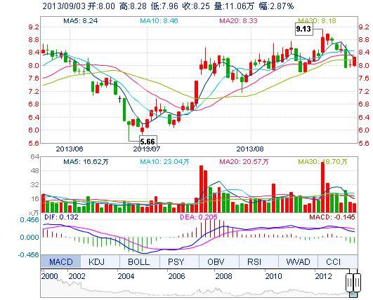 今開: 8.00 成交量: 11.06萬(wan) 手 振幅: 3.99% 最高: 8.28 成交額: 9019.45萬(wan) 元 換手率: 2.53% 最低: 7.96 總市值: 36.04億(yi) 市淨率: 2.56 昨收: 8.02 流通市值:...