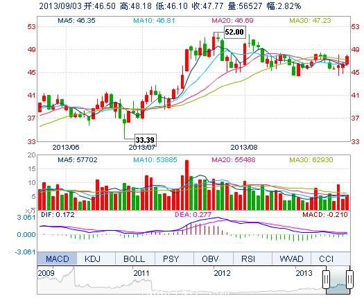 | 最 高: | 48.18 | 成交額: | 2.68億元 | 換手率: | 1.97% |