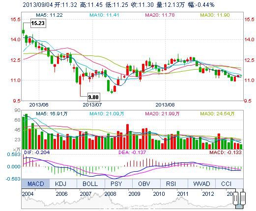 | 今 開: | 11.32 | 成交量: | 12.13萬手 | 振 幅: | 1.76% |