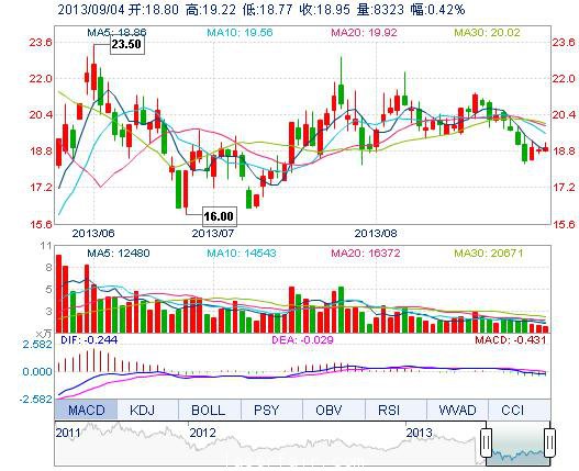 | 今 開: | 18.80 | 成交量: | 8323手 | 振 幅: | 2.38% |