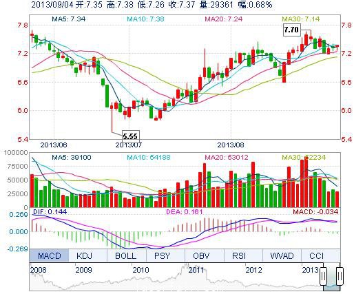 | 今 開: | 7.35 | 成交量: | 2.94萬手 | 振 幅: | 1.64% |