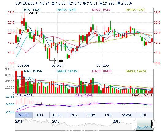 | 今 開: | 18.94 | 成交量: | 2.13萬手 | 振 幅: | 6.33% |