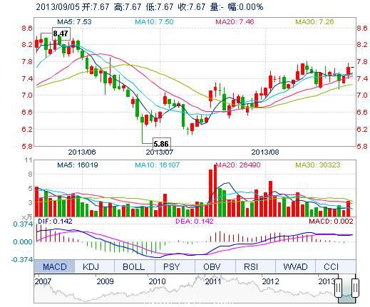 | 昨 收: | 7.67 | 流通市值: | 14.90億 | 市盈率TTM: | -- |