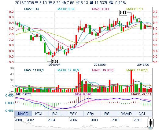| 今 開: | 8.10 | 成交量: | 11.53萬手 | 振 幅: | 3.18% |