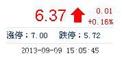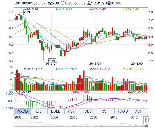 | 今 開: | 6.37 | 成交量: | 12.31萬手 | 振 幅: | 1.57% |