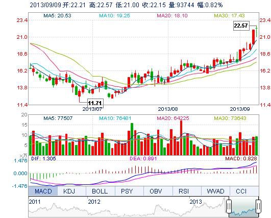 | 最 高: | 22.57 | 成交額: | 2.05億元 | 換手率: | 13.69% |