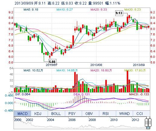 | 今 開: | 8.11 | 成交量: | 9.95萬手 | 振 幅: | 2.34% |