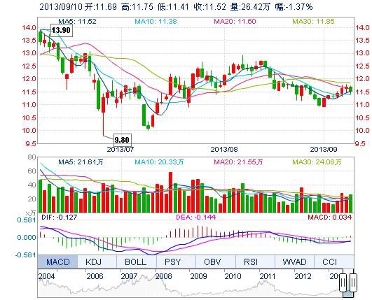 今開: 11.69 成交量: 26.42萬(wan) 手 振幅: 2.91% 最高: 11.75 成交額: 3.04億(yi) 元 換手率: 2.79% 最低: 11.41 總市值: 120.31億(yi) 市淨率: 3.59 昨收: 11.68 流通市值...