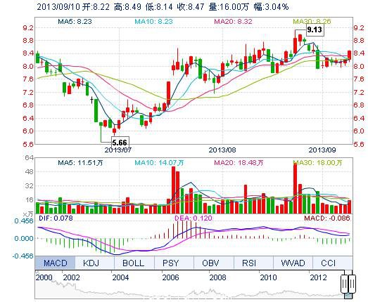 | 今 開: | 8.22 | 成交量: | 16.00萬手 | 振 幅: | 4.26% |