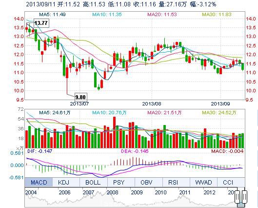 今開: 11.52 成交量: 27.16萬(wan) 手 振幅: 3.91% 最高: 11.53 成交額: 3.04億(yi) 元 換手率: 2.87% 最低: 11.08 總市值: 116.55億(yi) 市淨率: 3.48 昨收: 11.52 流通市值...