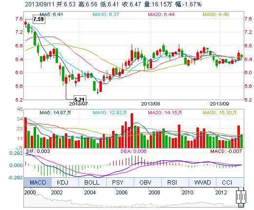 | 今 開: | 6.53 | 成交量: | 16.15萬手 | 振 幅: | 2.28% |
