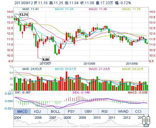 今開: 11.16 成交量: 17.33萬(wan) 手 振幅: 1.88% 最高: 11.25 成交額: 1.93億(yi) 元 換手率: 1.83% 最低: 11.04 總市值: 115.72億(yi) 市淨率: 3.45 昨收: 11.16 流通市值...