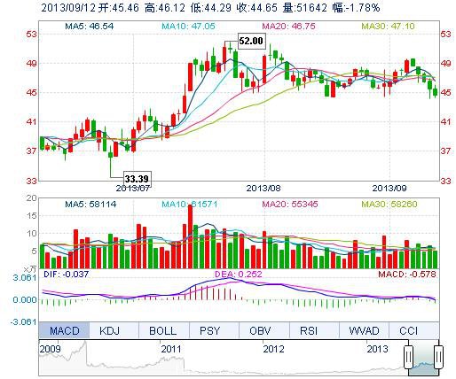 | 最 高: | 46.12 | 成交額: | 2.33億元 | 換手率: | 1.80% |
