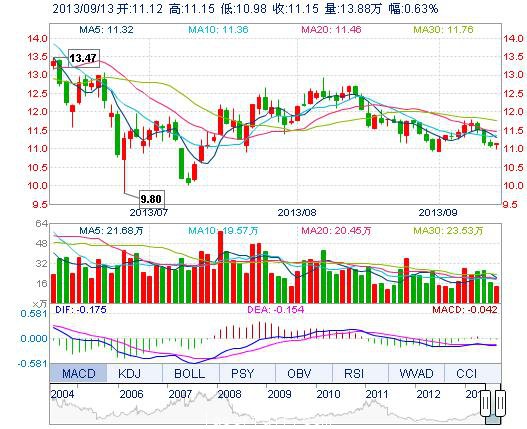 | 今 開: | 11.12 | 成交量: | 13.88萬手 | 振 幅: | 1.53% |