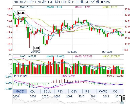 今開: 11.20 成交量: 13.32萬(wan) 手 振幅: 2.33% 最高: 11.30 成交額: 1.48億(yi) 元 換手率: 1.41% 最低: 11.04 總市值: 115.72億(yi) 市淨率: 3.45 昨收: 11.15 流通市值...