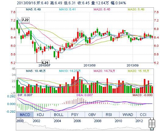 | 今 開: | 6.40 | 成交量: | 12.64萬手 | 振 幅: | 2.82% |