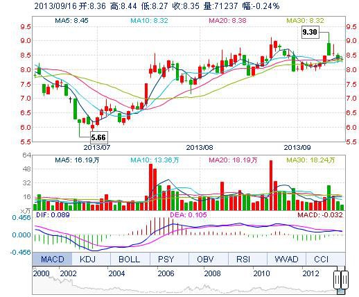 | 今 開: | 8.36 | 成交量: | 7.12萬手 | 振 幅: | 2.03% |