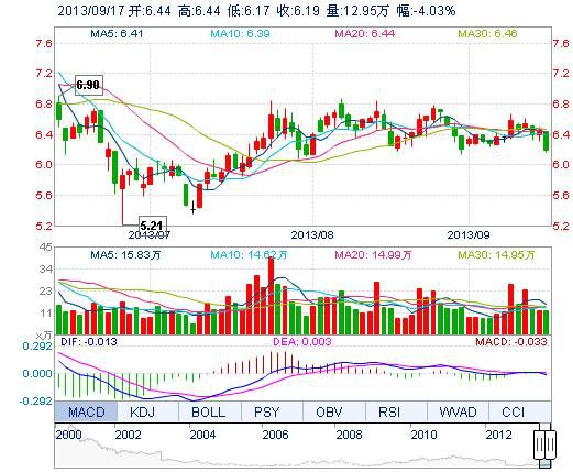 | 今 開: | 6.44 | 成交量: | 12.95萬手 | 振 幅: | 4.19% |