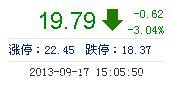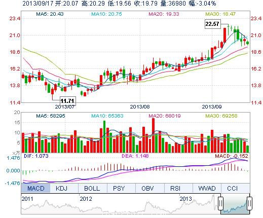 | 今 開: | 20.07 | 成交量: | 3.70萬手 | 振 幅: | 3.58% |