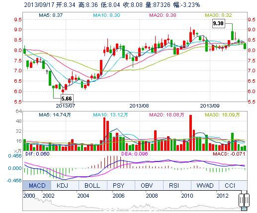 | 今 開: | 8.34 | 成交量: | 8.73萬手 | 振 幅: | 3.83% |
