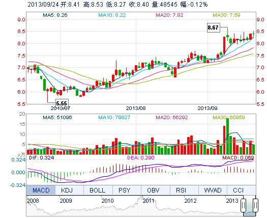 | 今 開: | 8.41 | 成交量: | 4.85萬手 | 振 幅: | 3.09% |