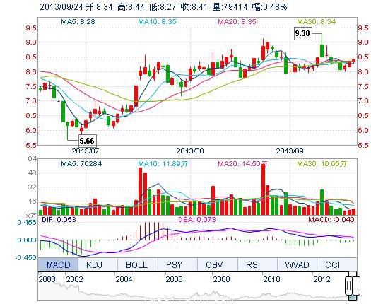 | 今 開: | 8.34 | 成交量: | 7.94萬手 | 振 幅: | 2.03% |