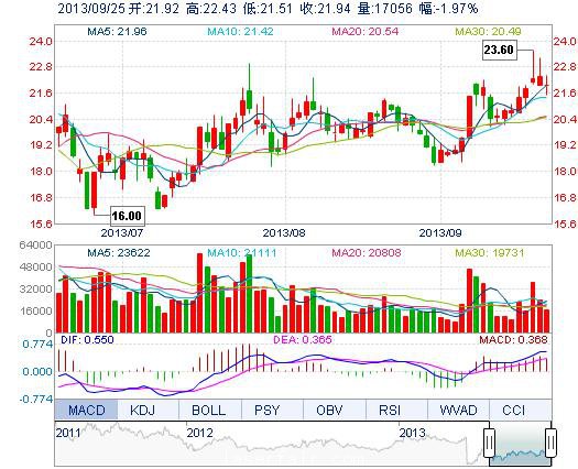 | 今 開: | 21.92 | 成交量: | 1.71萬手 | 振 幅: | 4.11% |