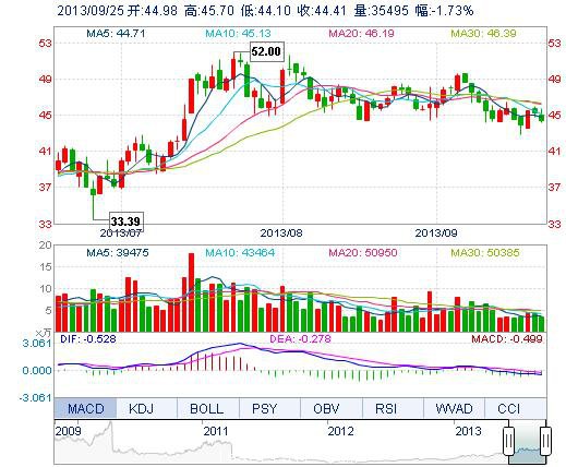 | 今 開: | 44.98 | 成交量: | 3.55萬手 | 振 幅: | 3.54% |