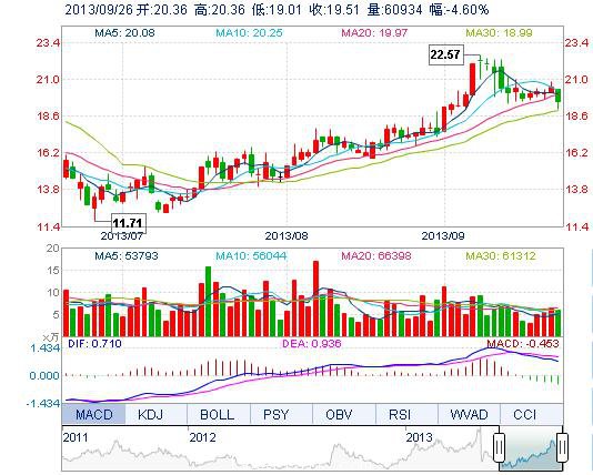 今開: 20.36 成交量: 6.09萬(wan) 手 振幅: 6.60% 最高: 20.36 成交額: 1.19億(yi) 元 換手率: 8.90% 最低: 19.01 總市值: 26.14億(yi) 市淨率: 8.17 昨收: 20.45 流通市值:...