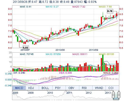 | 今 開: | 8.47 | 成交量: | 8.78萬手 | 振 幅: | 3.97% |