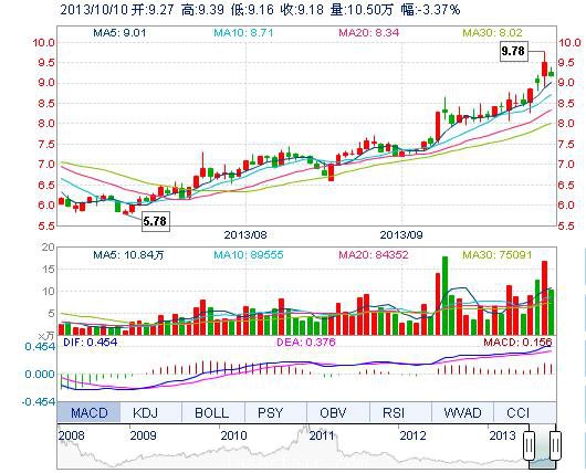 | 今 開: | 9.27 | 成交量: | 10.50萬手 | 振 幅: | 2.42% |