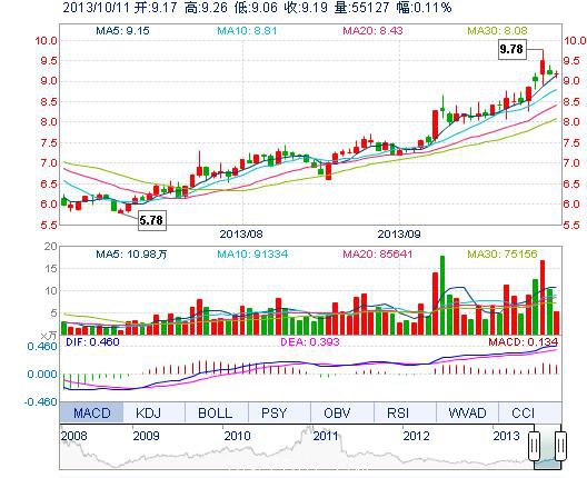 | 今 開: | 9.17 | 成交量: | 5.51萬手 | 振 幅: | 2.18% |