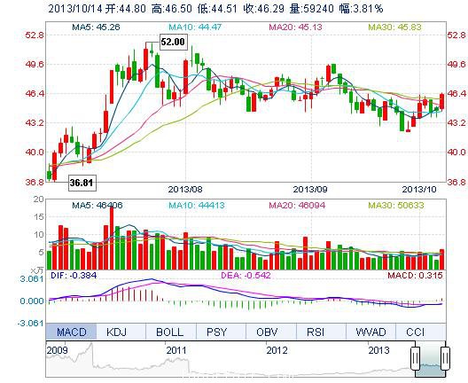 | 最 高: | 46.50 | 成交額: | 2.70億元 | 換手率: | 2.06% |