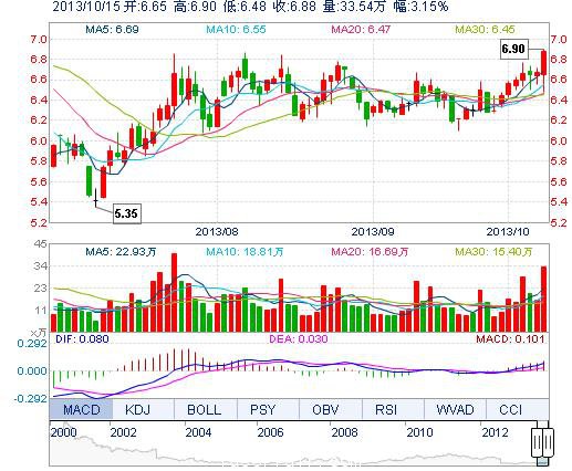| 最 高: | 6.90 | 成交額: | 2.25億元 | 換手率: | 3.76% |