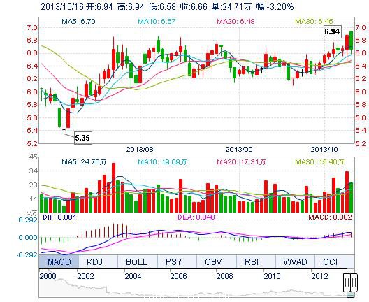 今開: 6.94 成交量: 24.71萬(wan) 手 振幅: 5.23% 最高: 6.94 成交額: 1.67億(yi) 元 換手率: 2.77% 最低: 6.58 總市值: 59.35億(yi) 市淨率: 2.26 昨收: 6.88 流通市值: 59...