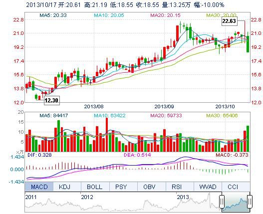 | 今 開: | 20.61 | 成交量: | 13.25萬手 | 振 幅: | 12.81% |