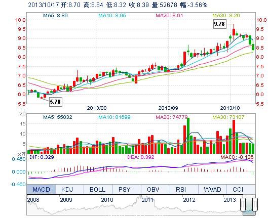 | 今 開: | 8.70 | 成交量: | 5.27萬手 | 振 幅: | 5.98% |