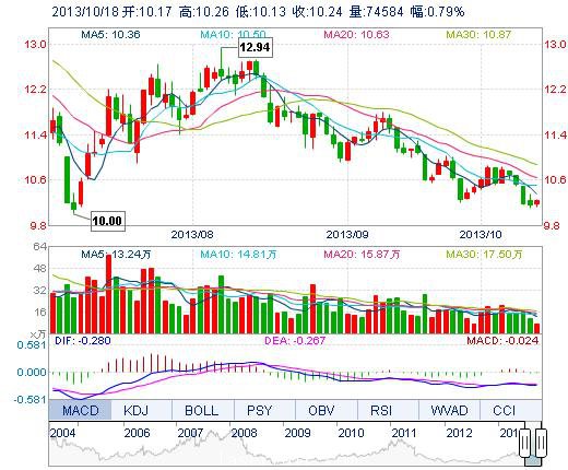 今開: 10.17 成交量: 7.46萬(wan) 手 振幅: 1.28% 最高: 10.26 成交額: 7616.27萬(wan) 元 換手率: 0.79% 最低: 10.13 總市值: 106.95億(yi) 市淨率: 3.19 昨收: 10.16 流通市...