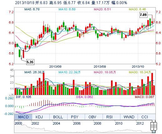 | 今 開: | 6.83 | 成交量: | 17.17萬手 | 振 幅: | 2.63% |
