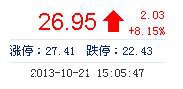 | 最 高: | 27.29 | 成交額: | 3564.68萬元 | 換手率: | 6.30% |