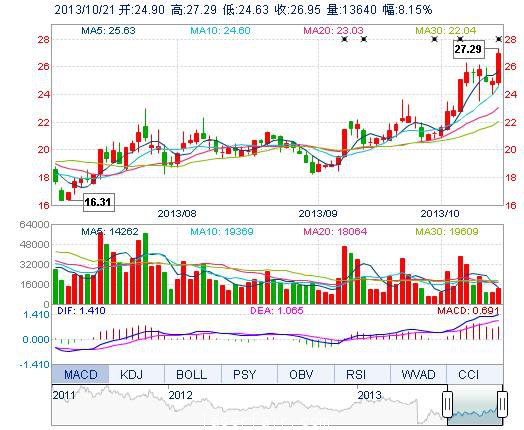 | 今 開: | 24.90 | 成交量: | 1.36萬手 | 振 幅: | 10.67% |