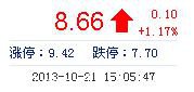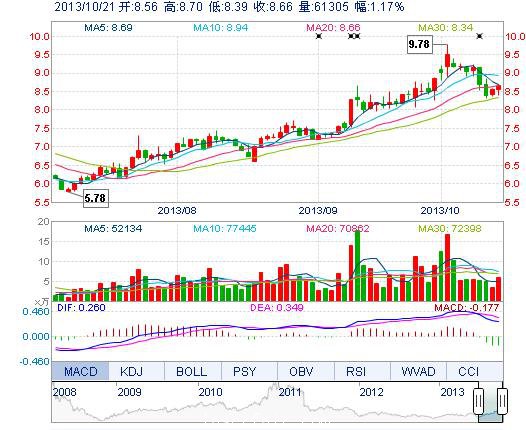 | 今 開: | 8.56 | 成交量: | 6.13萬手 | 振 幅: | 3.62% |