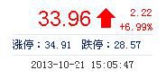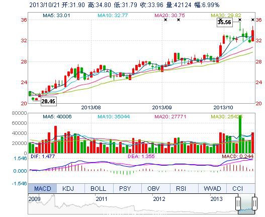 今開: 31.90 成交量: 4.21萬(wan) 手 振幅: 9.48% 最高: 34.80 成交額: 1.42億(yi) 元 換手率: 1.24% 最低: 31.79 總市值: 146.93億(yi) 市淨率: 9.55 昨收: 31.74 流通市值...