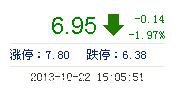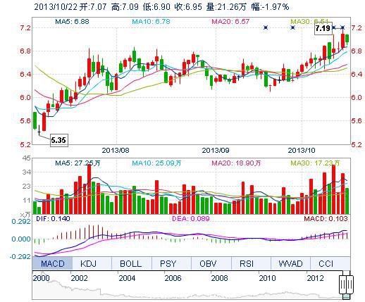 今開: 7.07 成交量: 21.26萬(wan) 手 振幅: 2.68% 最高: 7.09 成交額: 1.48億(yi) 元 換手率: 2.39% 最低: 6.90 總市值: 61.93億(yi) 市淨率: 2.36 昨收: 7.09 流通市值: 61...