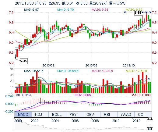 | 今 開: | 6.93 | 成交量: | 20.99萬手 | 振 幅: | 4.89% |