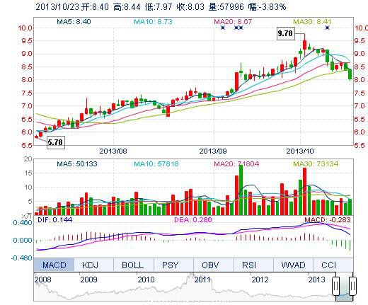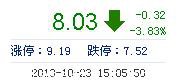 | 今 開: | 8.40 | 成交量: | 5.80萬手 | 振 幅: | 5.63% |